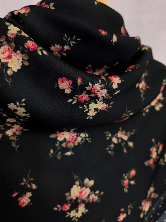 جنس: ـ انقدر سبک و لطیفه که انگار هیچ چی سرت نیست، اصطلاحاً کولر داره و مناسب فصل گرماست ـ با پس زمینه مشکی مناسب برای ایام محرم و عزاداری ـ قواره ۱۰۷ سانت 📏 ـ بهترین گزینه برای دختر کوچولو های بین ۶ تا ۱۲سال 👌