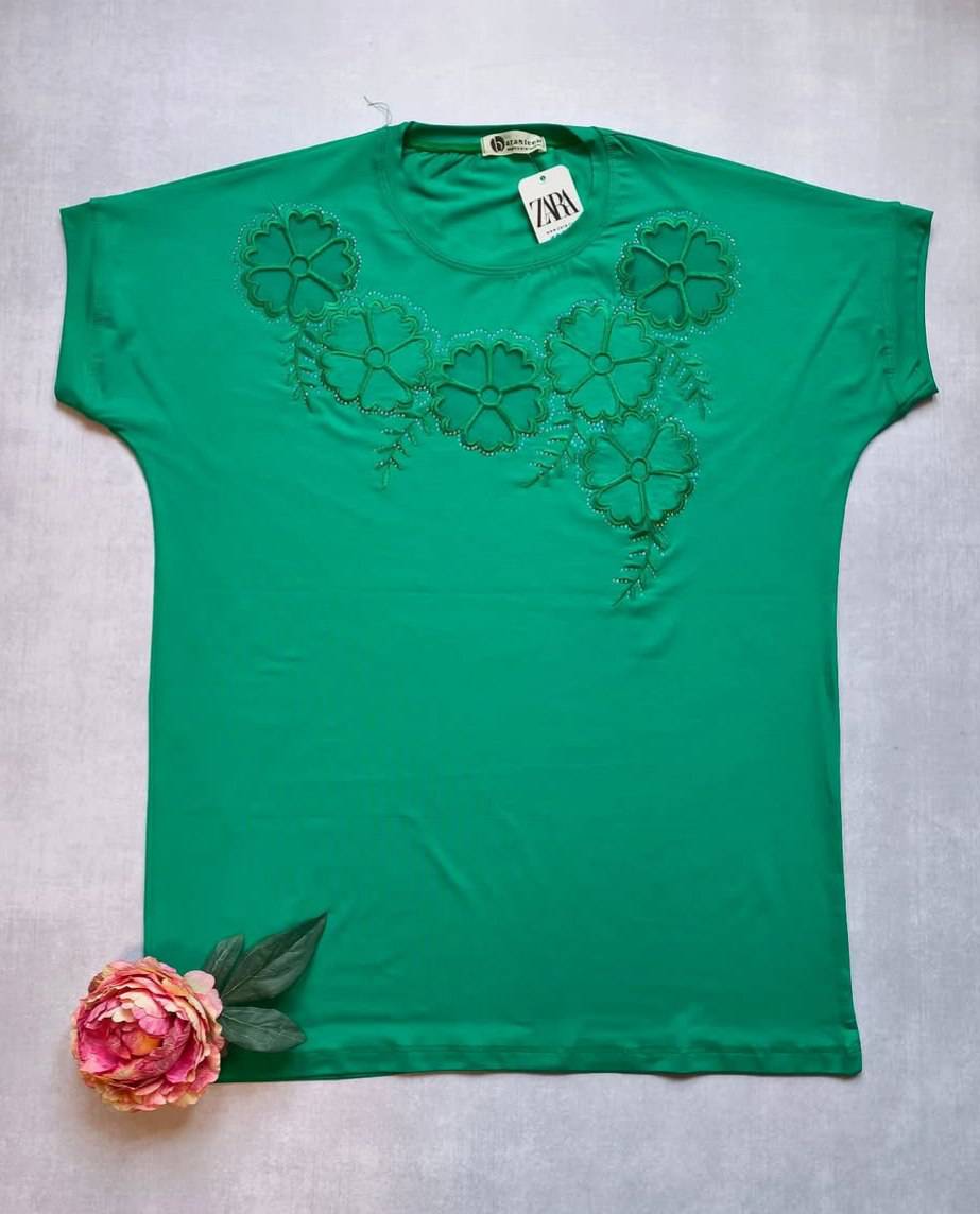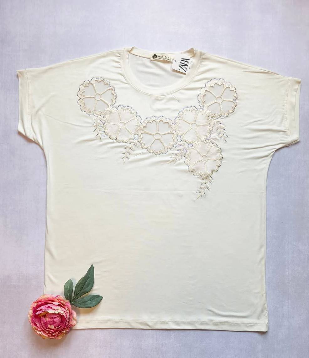 تیشرت زنانه گلدوزی با تور