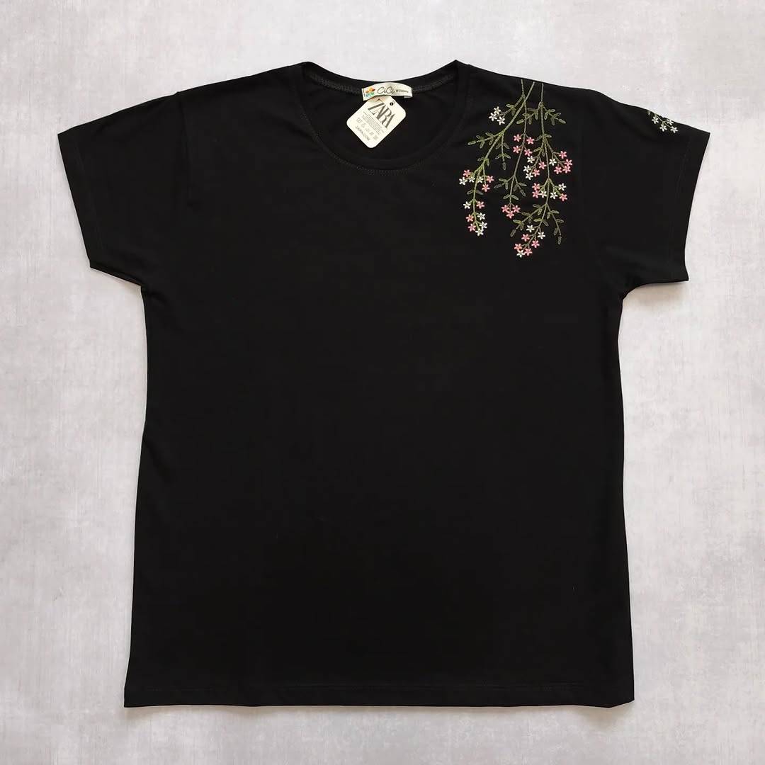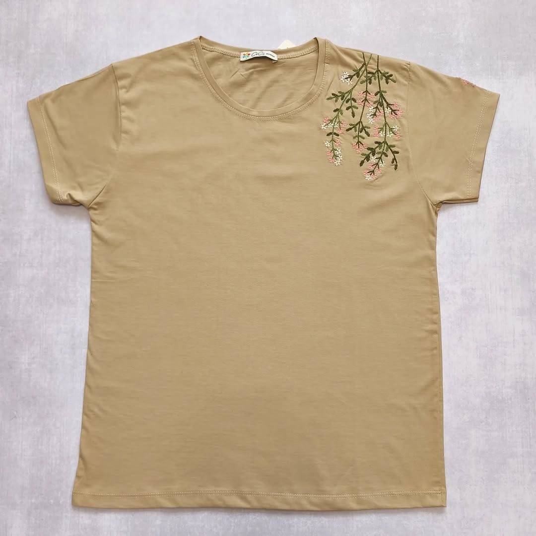 تیشرت شکوفه جنس 👈 پنبه دارای ۶ رنگ زیبا سایز بندی 👈 فری سایز جزییات 👈 آستین کوتاه، یقه گرد