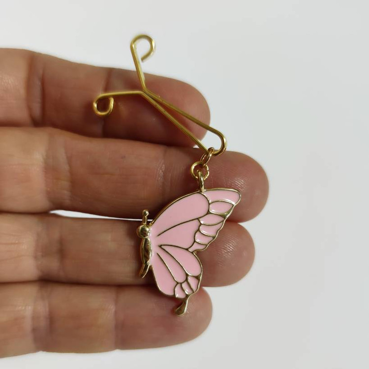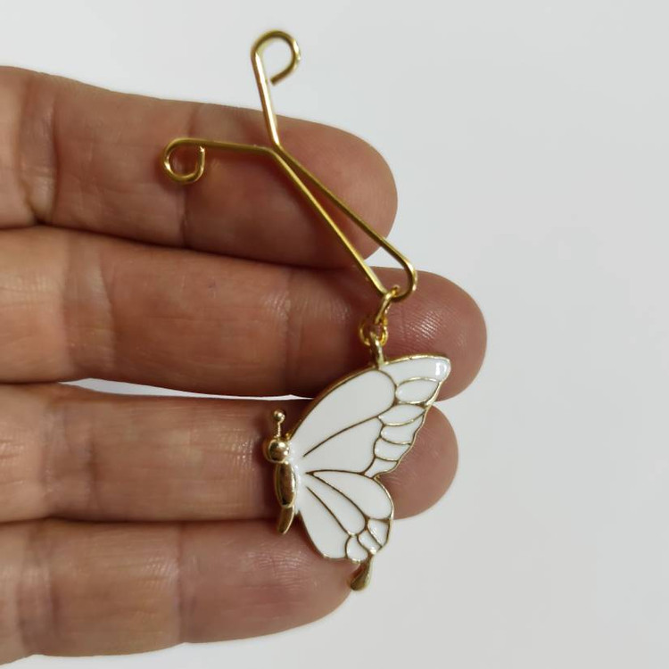جزئیات: با آویز پروانه رنگی فلزی انتخابی مناسب برای دختر خانوم های زیبا آویز در چهار رنگ 👈 سفید، مشکی، صورتی، آبی ابعاد : حدود ۲×۳ سانت گیره با کیفیت (محکمه و روسری رو نخ کش نمیکنه) برای ثبات رنگ گیره باید ازش در برابر مواد آرایشی و الکلی مثل عطر مراقبت بشه .