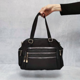 جزئیات : ✓ دارای دو بند دستی ✓ دارای بند بلند قابل تنظیم رودوشی ✓ دارای ۳ زیپ جداگانه در جلو کیف ✓ دارای جیب زیپی در بغل کیف ✓ دارای ۲ محفظه جداگانه ✓ نحوه بسته شدن زیپ