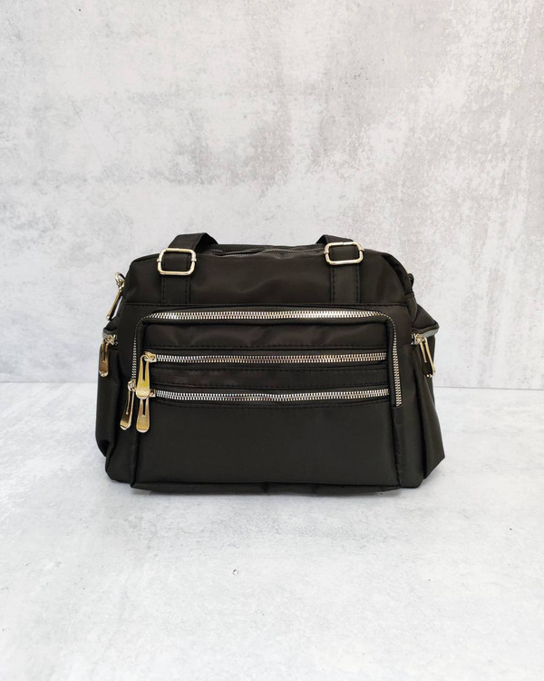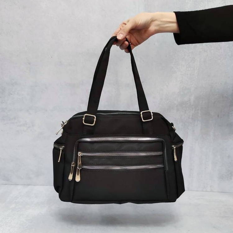 جزئیات: ✓ دارای دو بند دستی ✓ دارای بند بلند قابل تنظیم رودوشی ✓ دارای ۳ زیپ جداگانه در جلو کیف ✓ دارای جیب زیپی در بغل کیف ✓ دارای ۲ محفظه جداگانه ✓ نحوه بسته شدن زیپ